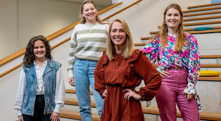 Tijdens de vierde Praatje pod schuiven Sylvia Uittenboogaard van CarpentierMooren en collega's Barry, Johan en Renee aan om het te hebben over het werven van medewerkers.